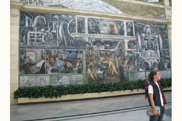 Visit to the site of ma conference, the Detroit Institute of Arts. Interesting collection of Islamic Arts under the supervision of the curator, Dr. Heather Ecker. Another interesting collection is that of African Arts. But I turned my attention to this huge and famous fresco, showing different activities of MoTown, the car city…