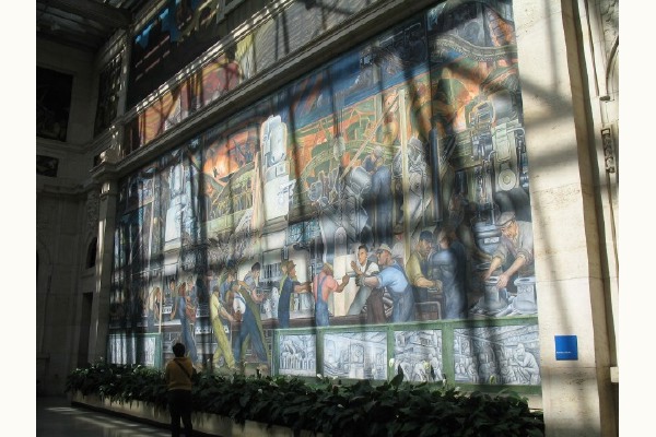 Visit to the site of ma conference, the Detroit Institue of Arts. Interesting collection of Islamic Arts under the supervision of the curator, Dr. Heather Ecker. Another interesting collection is that of African Arts. But I turned my attention to this huge and famous fresco, showing different activities of MoTown, the car city…