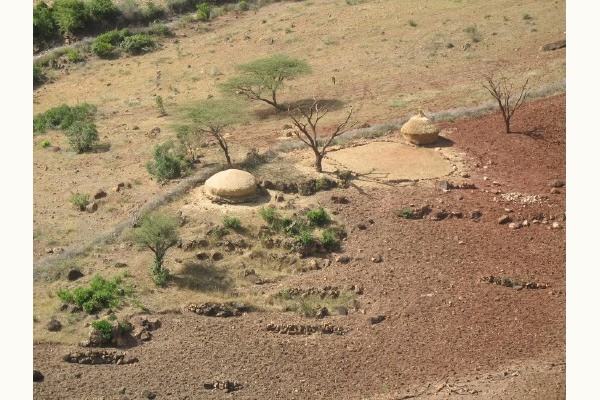 30. là, des aires pour battre les céréales. Nous finissons par atteindre la maison du cheikh. Mais sa femme nous explique qu’il n'est pas à la maison. Il est dans la vallée, dans les champs de maïs avec des agriculteurs. Ils sont réunis pour la cérémonie par laquelle on demande de la pluie (istisqā’). // there, some threshing floors. Eventually we reach the house of the sheikh, but his wife explains that he is not at home. He is down in the valley in the maize fields with the farmers. They are meeting for a rainmaking ceremony (istisqā’).