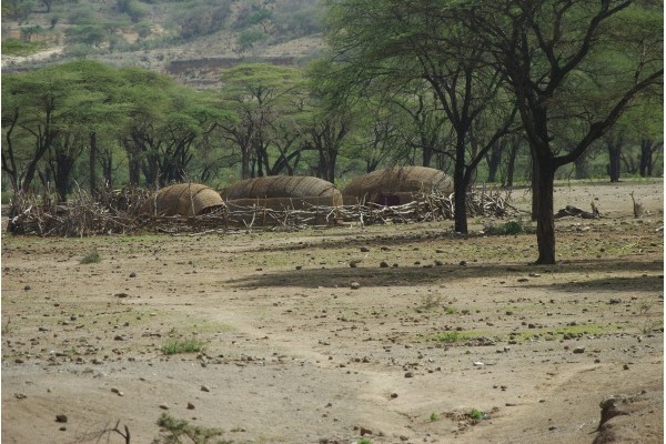 58. Le jour. On plie bagage. Sous le tapis de deux tentes, on découvre des scorpions qui avaient fait leur nid. Et c’est le départ pour Addis. Paysage à proximité du village. // Day again. Bags are packed . Under the groundsheets of two tents we discover scorpions nesting. Departure for Addis. Landscape near the village.