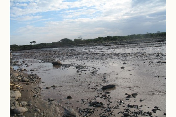 8. On arrive au bout du voyage, mais avant de bivouaquer, la première préoccupation va en direction de la rivière, car demain, il faudra la traverser afin de se rendre sur le site. Des pluies drues et imprévues en ont gonflé le lit. // Journey’s end, but before pitching camp our attention turns to the river which we will have to cross the following day on the way to the site. Heavy and unexpected rains have swollen it to fill the bed.